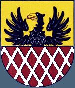 arms placed - per fess Or and Gules, in chief a Demi-eagle Sable beaked