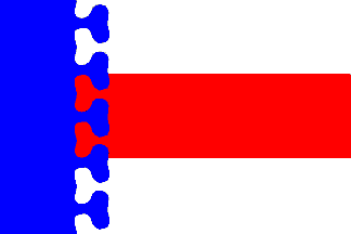 bílý. V žerdové cásti listu je do 1/4 jeho délky svislý modrý pruh ohranicený