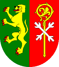 1:2:2:1; on green a rampant yellow dog with red tongue and claws; on red