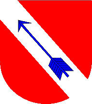The arms are on the same page: gules, a bend dexter, an arrow azure