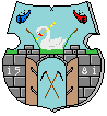 gate; the opening is blue, charged with two crossed hoes with black handles