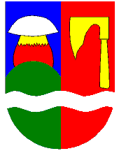 on blue a green mound issuing a mushroom with white, yellow and red colors;