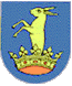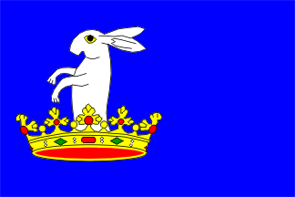 Description: Modrý list, v žerďové polovině bílý zajíc vyrůstající