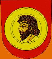 The Coat of Arms has John the Baptist, the patron saint of the local church (kostel
