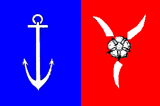 and three parts of a plough, white, "Krojidly"- coulters. Flag adopted