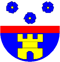 gules a) argent three flowers azure placed 2,1; b) azure a castleturret