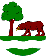 a tree proper with a bear passant brown issuing from a base vert a wavy