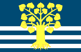 A flag with a linde - lime tree of this municipality in Zlín district,