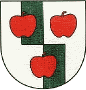 Description: Na stříbrném štítě se zeleným odoseným kůlem tři červená
