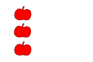 Description: Bílý list se třemi červenými jablky pod sebou s osou