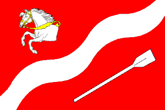 - red wirg a white wavy fly-diagonal; in top hoist the half horse of the