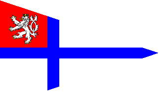 blue cross; a red canton charged with the white Bohemian double-tailed