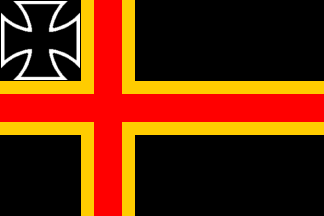 On a black field a red Scandinavian cross, fimbriated golden, in the canton the Iron Cross.
