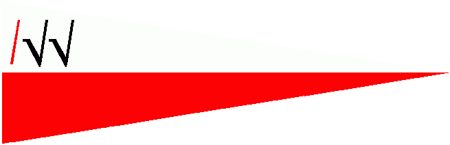 The ratio is estimated 1:4. The pennant is horizontally divided into white over red. At the hoist in the white half there is "W" looking like two black squareroot symbols prefaced by a red slash.