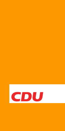 The main feature of the logo is, that it always has to be the same: a red inscription 'CDU' (new font) on a white rectangle of proportions 1:3. Any additional symbols (regional symbols) or text have to be outside the white rectangle. If shown on a coloured background this logo is usually shown on an orange field.