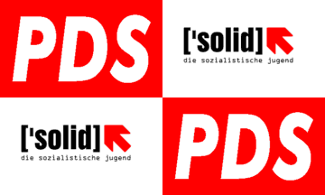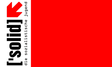 At the 1st May 2002 demonstration in Munich, the flag of the PDS youth organization solid - die sozialistische jugend (solid - the socialist youth) could be seen. Since April 2000 they use the flag. The flag shows the logo on a white field; the logo contains the texts "['solid]" and "die sozialistische jugend" in black and an upward red