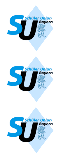 The CSU has an own branch for pupils called the Pupils' Union of Bavaria (SU Bayern or Schüler-Union Bayern). Their flag uses a variant of the CSU logo: a pale blue lozenge with a darker-blue lion and the inscriptions "SU" and Schüler Union Bayern. The (vertical) flag shows the logo three times beneath each other.