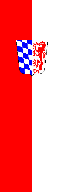 The coat-of-arms (since 24th September 1957) shows the Bavarian lozenges and the [heraldic] panther from the arms of the Spanheim family. The unofficial flag is horizontally divided red-white with the arms in the center. There had been quite some discussion on the flag topic. The Bezirk was not happy with the suggested simply striped flag (communal flags in Bavaria have to be of two or three stripes, with or without the arms) and wanted to have something more distinctive. In 1961 a banner-of-arms was in the discussion, but also rejected by the Bavarian Hauptstaatsarchiv (Main State Archives). Later on the Bezirk obviously decided to use the first suggested flag (red-white), but without the approval by the Ministry of the Interior. Source: Linder 1997 which is available online at the Der Flaggenkurier website. Further information at the Bezirk Niederbayern website (illustration and description of the arms).