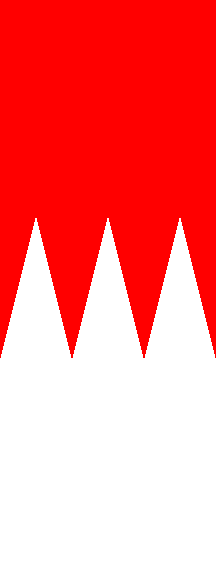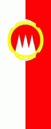 The ratio is approx 5:2. It is a red - yellow vertical bicolour. A Franconian rake in a yellow round shield is shifted to the top.