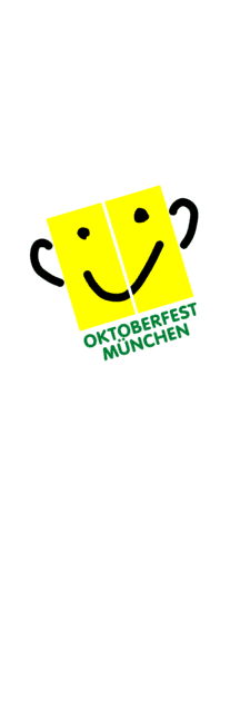 The flag of the Oktoberfest is white with the logo. The logo shows two stylized Masskrüge (beer tankards) in yellow, together with some dots forming