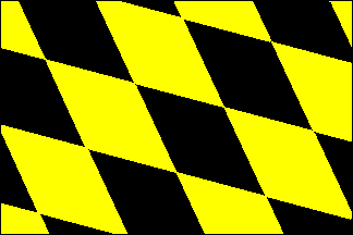 The city flag of the Bavarian capital Munich has, like Bavaria, two flags tracing back to the middle ages with no known date of adoption. Variant no.1 shows two horizontal stripes of black over yellow (a real yellow, not a golden yellow like in the German national flag). Variant no.2 has black and yellow lozenges arranged like in the Bavarian flag. Once again the number of lozenges is not fixed.