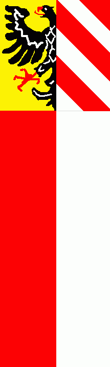 It is a plain red - white bicolour. This variant seemed to be the official version, hoisted at the city gates.
