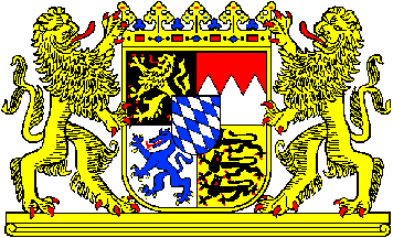 Keywords: bavaria | bayern | bicolour | lozenges(21) | lozengy | inescutcheon | supporters | coronet | franconian rake | lions(black;3) | lion(golden) | panther |