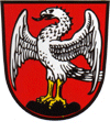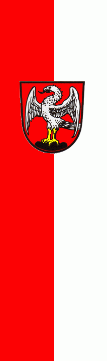 The municipal colours were granted 4 May 1954. The text describes the flag as follows (my translation): "The flag shows two stripes of the colours White (Silver) Red. In the upper part (head) of the flag the arms of the market town may be placed, if so chosen." This of course describes a typical vertical flag as usual in Bavaria; at this time it was more common to put the arms on a white square field at the top of the flag, instead of putting it directly onto the stripes, as usually done nowadays.