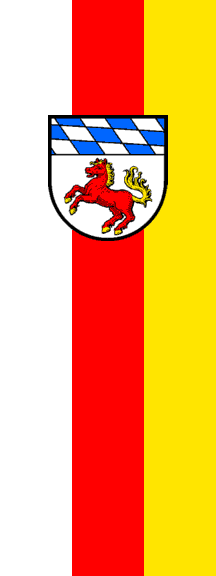 The municipal flags in Bavaria are usually simple striped flags consisting of the colours of the arms. In most cases the arms is attached to the flag. The place of the arms and its size are not prescribed, but very frequently the arms appears offcentered to the top. Bavarian municipal flags are in most cases used as vertical flags, i.e. flags higher than wide. The two types frequently used are the Banner (a flag with a horizontal bar firmly attached, which is hoisted on the flagpole by pulling this bar to the top) and the Knatterfahne (a flag hoisted like a normal flag, but higher than wide [thus the hayard runs along the long side of the flag]). By the way, one should mention that municipal flags in Bavaria are usually called Gemeindefahne, not Gemeindeflagge.