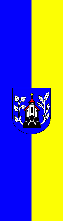 It is a blue - yellow vertical bicolour. The coat of arms is shifted to the top.