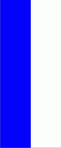 The ratio is 3:5. It is a blue over white horizontal bicolour. The coat of arms is in the centre of the flag.