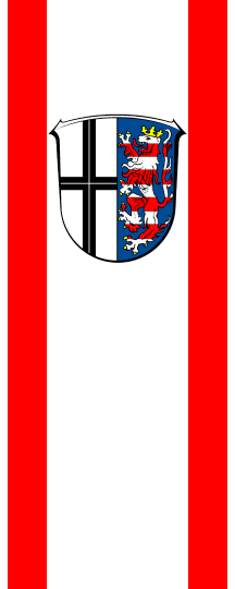 It is a red over white over red horizontal triband with ratio approx. 1:4:1 and a narrow white stripe at the top- and bottom-edge. The coat of arms is in the white stripe and shifted to the hoist.