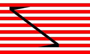 Halberstadt (Halberstadt county) has about 40,000 inhabitants. In the middle ages it was the seat of a bishopric and one of the most important cities in (Lower) Saxony. The flag dates at least back to the 16th century and has sixteen stripes, alternatingly white and red, superimposed on which is a 'wolf hook' one of the more interesting flag designs in Saxony-Anhalt. The flag is shown both in flag and banner form in Günther 1996a.