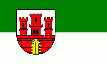 It is a green - white vertical bicolour with the coat of arms shifted to the top.