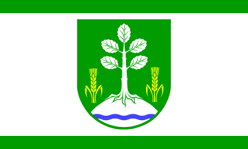 The green colour and the tree are symbolizing forestal riches. The tree on the hill is also alluding to numerous tomb hills in the area. The grain and the yellow colour are symbolizing the rual character, agriculture and prosperity. The fess wavy is symbolizing the riches of water.