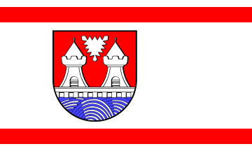 The flag was approved on 21 July 1951. The coat of arms was approved on 26 March 1938. The artist is A. Kaufmann from Itzehoe.