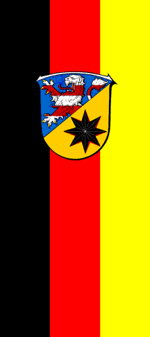 It is a black - red - yellow vertical tricolour. The coat of arms is shifted to the top.