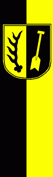 It is a black - yellow vertical bicolour. The coat of arms is shifted to the top.