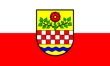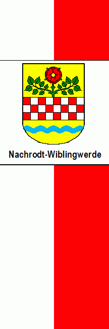 According to source the chequered bar reminds at the former rulers, the counts of Mark. The wavy line is symbolizing the small river Lenne. The rose is taken from the church seal of Wiblingwerde. Nachrodt-Wiblingwerde received arms in 1935; the rose is taken from the seal of the local parish, the red-white bar from the County of Mark, and the wavy bar symbolizes the river Lenne. The flag is white-red with the arms, used both as a flag for hoisting and as a banner