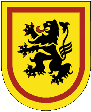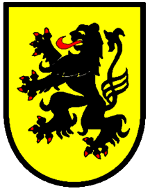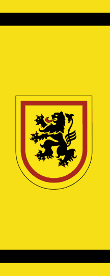 Löwe mit roter Zunge und roter Bewehrung. Die Landkreisflagge ist wie folgt