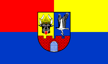 Here is the flag of Müritz County in Mecklenburg-Westpomerania. Flag adopted 7 December 1995; coa adopted 20 March 1995. Source: County website.