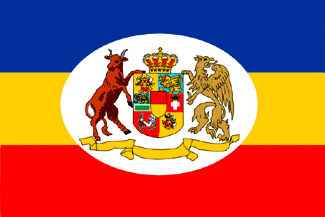 Horizontal tricolor blue-yellow-red. Adopted officially by Mecklenburg-Schwerin 23 December 1863. Used as Landesflagge 1921-1935.