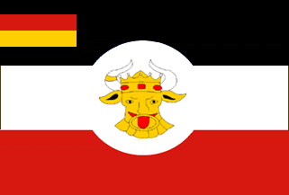 Like the Prussian State Ensign for Sea Services 1895-1918, except the square canton is yellow with the oxhead of the state ensign 1860's-1918. Adopted 1893 and abandoned between 1918 and 1921. Illustrated in Crampton 1990 p. 42, Meyers Konversations-Lexikon 1912 vol. 4, National Geographic 1917 p. 367, nos. 999 and 1006 (?).