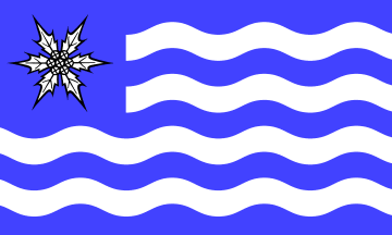Its coat of arms is a silver six-leafed beach thistle on a blue background.