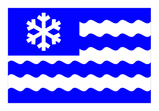 The flag consists of nine evenly sized wave stripes in blue and white.