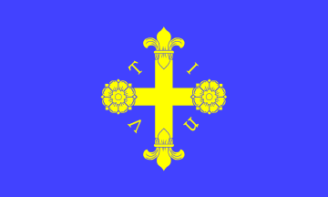 Roses and lilies at the ends of the crossbars are medieval symbols of Christian virtues and thus symbolizing the sovereignty of the church, i.e. the bishops of Lübeck. According to Stadler rose and lily are symbolizing justice and jurisdiction, which was gained in 1257 under supervision of the bishops of Lübeck. The inscription "VTIN" (=UTIN), known since approx.. 1215, reveals the Slavic origin of the settlement, which had been overtaken by Dutch settlers at the instigation of Count Adolf II of Holstein. Already since 1156 the settlement belonged to the dominions of Bishop Gerold of Lübeck, who established an episcopal court and a market in Eutin, which gained city rights in 1257, granted by Bishop Johann von Diest of Lübeck. During the Protestant Reformation the bishopric was changed into a principality, since 1586 the prince was a member of the house of Gottorf. Eutin lost its importance, after the bishopric was united with the Duchy of Oldenburg in 1773. The arms are based upon the old main seal. The existence can be proven in stamps since 1337.