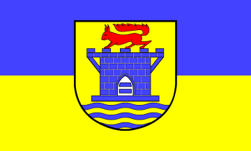Description of coat of arms: In a golden (= yellow) shield over three blue barrulets wavy stands a blue tower, masoned silver(= white) with a close blue and silver (= white) gate. The tower is topped by a red, statant squirrel. Meaning: The location was first mentioned in 1197 as "Ekerenvorde" and gained city rights in the 13th century, proven by a charter from 1288. The city rights due to the Schleswig type were confirmed in 1543. The city belonged to the Gottorf branch of the dukes of Schleswig until 1721. The coat of arms is based upon seals from the 14th and 15th century. The current version was fixed in 1934. An approval can't be traced. The tower as part of the city's fortification is representing the status of a city. Squirrel (Lower German: Ekeren) and the barrulets wavy ,representing a ford, are canting elements. According to early reports in this place existed lots of squirrels and the Danish Wohld was afforested so closely that a squirrel could manage the way from Eckernförde to Kiel without touching the ground. Source: Reißmann 1997, p.125 and Stadler 1970, p.97