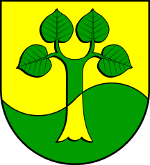 The shield is divided by a sinuous line into golden (= yellow) over green. The only figure is a tree with four leaves in counterchanged colours.