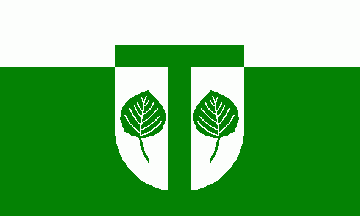The silver (= white) shield is divided by a green pale, which is connected with the green chief. On both sides of the pale is a green leaf of aspen.