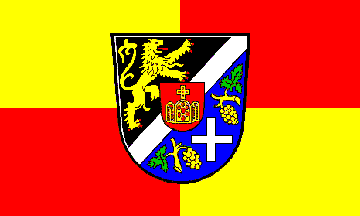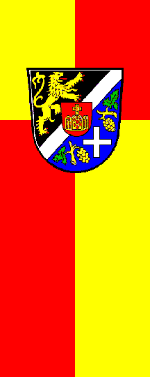 Quartered yellow and red, bearing the arms. Granted 7.6.1978. Both flag and arms are very similar to the Ludwigshafen flag. Sources: Debus 1988 and Ralf Hartemink's International Civic Arms website.